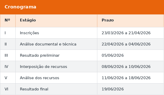 Acesse o Edital no endereço https://drive.google.com/file/d/1y0Mw-nFc1EluYYjU1SV3LUzhMRtcBQfK/view